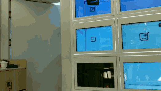 配餐期间,取餐柜面板会显示出一个九格密码键,当一个餐配好后,你会发现柜子突然变黑,三秒后,面板一亮,饭就神奇地出现在取餐柜里了。