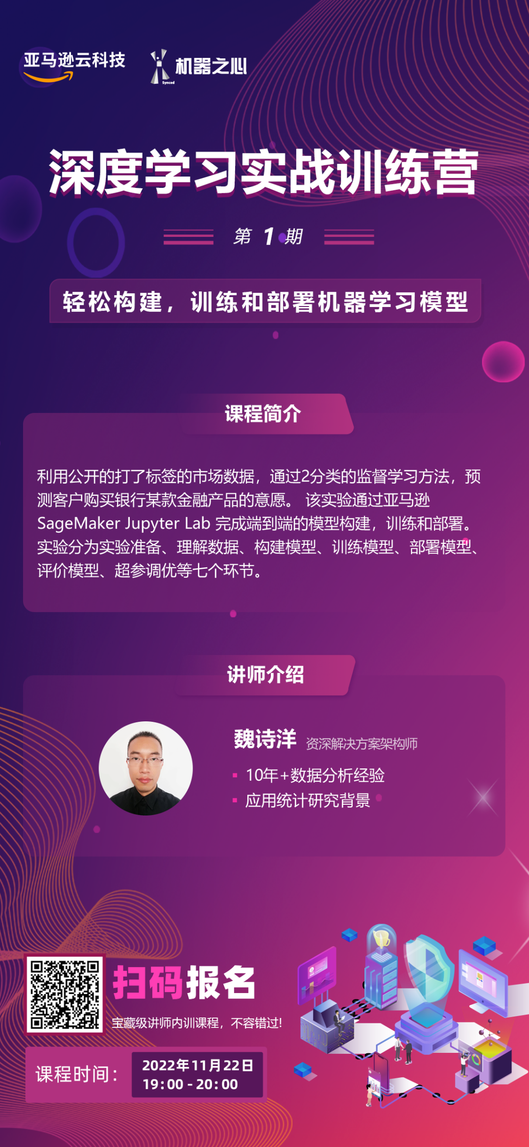 为了帮助开发者快速提升实战能力,机器之心联合亚马逊云科技开设了《深度学习实战训练营》线上实战营。实战营为期3周,共6次课程,还有6次课后作业,实战营期间讲师将在答疑群中随时解决同学的疑问,全程免费,欢迎希望上手实操深度学习的同学加入学习。