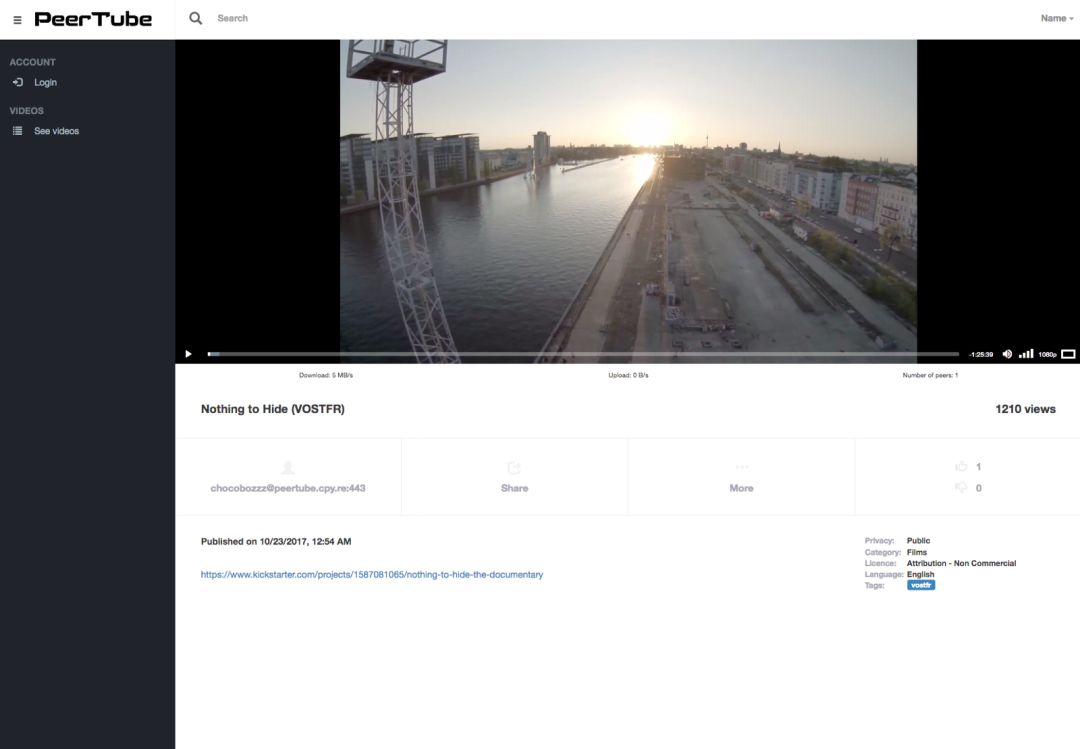 另一个例子是在视频领域——PeerTube。