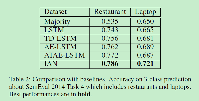 Interactive Attention Networks for Aspect-Level Sentiment Classification(Ma/IJCAI2017): https://arxiv.org/pdf/1709.00893.pdf