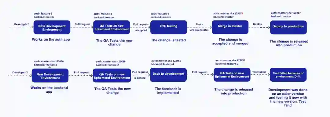 在可预见的未来,配置漂移仍然不可避免。而市场上正在实施的一些配置管理方法,如自动对比环境的当前配置和基线配置,能缓解配置漂移的副作用。EaaS 解决方案,配合 IaC 和良好的变更管理,可以帮助你预防漂移,缩短开发周期。借助合适的网勾(Webhook),我们可以识别代码或基础设施变更。通过维护每个环境的状态,可以知道它是否发生了漂移,并决定是否触发一次自动更新。我们希望任何生产环境都不出现漂移。但是,生产环境服务于在线客户,通常需要满足特定的服务等级协议(SLA),而且有维护窗口,因此,这些环境会有手动触发的更新,或是持续部署调度器触发的更新。