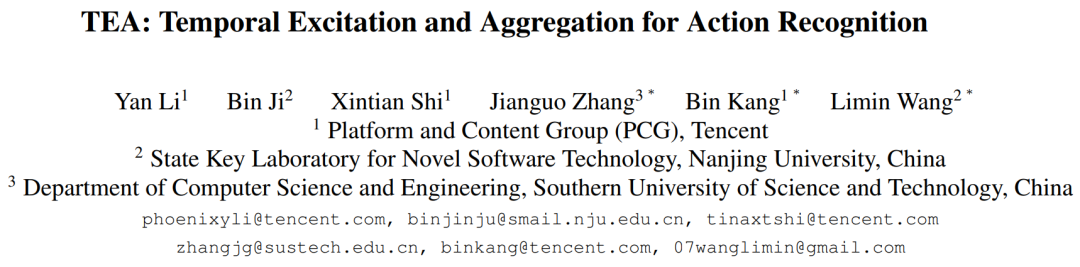 南京大学MCG group/腾讯PCG 提出可以进行用于时序建模的轻量级行为识别模型TEA