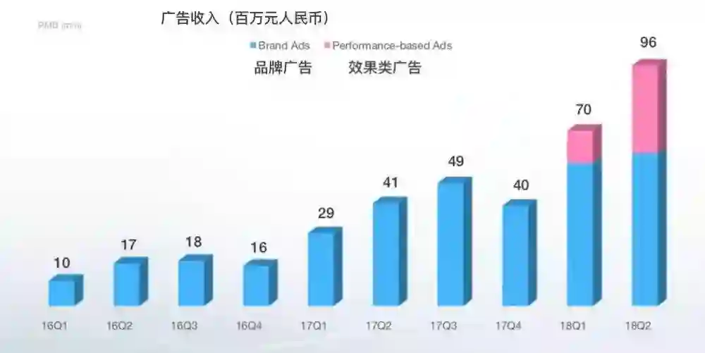 财报显示,广告业务在第二季度的收入为9586.3万,同比增长132%,环比增长58%。这部分的增长或许得益于品牌广告和效果类广告业务的快速驱动。