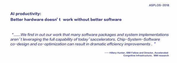 IBM 和 Nvidia 一起搭建了世界上最强的超级计算机 Summit,一共用了 2 万多块 V100 GPU,还使用了最先进的互联技术 (NVLink, Infiniband),要说最强的硬件,除了 TPU Cluster,应该没有更好的了,这是不是就够了呢?IBM 首席科学家在今年的 ASPLOS(计算机体系结构顶级会议) 上做了一个特邀报告,主题是「只有很强的硬件,没有很好的软件还是不能解决扩展问题」。现在国内拥有几千块 GPU 乃至上万块 GPU 的头部公司不在少数,但基于开源框架能训练 BERT-Large 模型吗?不行,这也印证了软件框架瓶颈的问题:购买了很多的硬件,但用不起来,或者说不能很好的用起来。