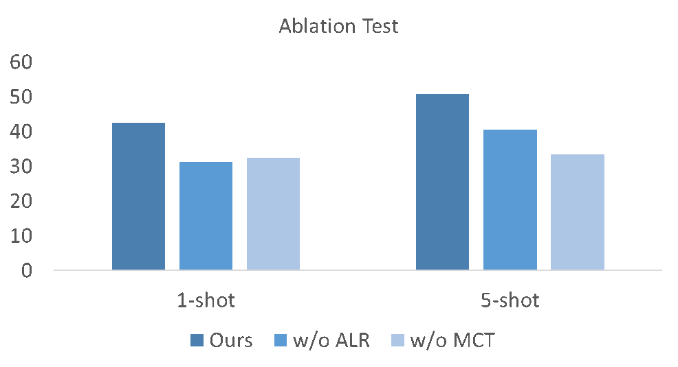 图5的消融实验显示所提出的ALR和MCT都对最终的效果产生了较大的贡献。