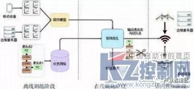 针对深度学习模型应用部署的挑战,权衡模型推断速度与精度之间的折衷关系,我们定义如下研究问题:对于给定时延需求的深度学习任务,如何联合优化模型分割和模型精简这两个决策,从而使得在不违反时延需求的同时最大化深度学习模型的精确度。针对上述问题,我们提出了基于边缘与终端协同的深度学习模型运行时优化框架 Edgent[15]。如图3所示,Edgent的优化逻辑分为三个阶段:离线训练阶段,在线优化阶段以及协同推断阶段。