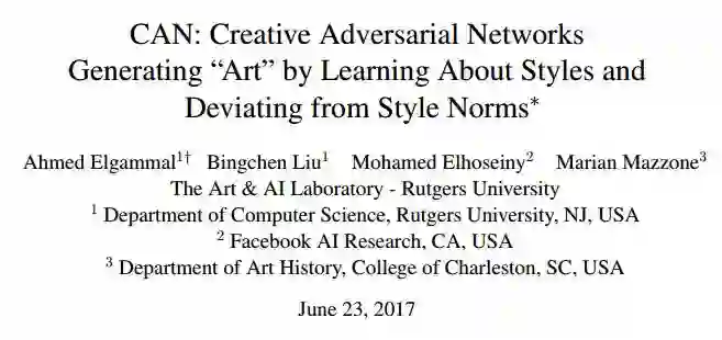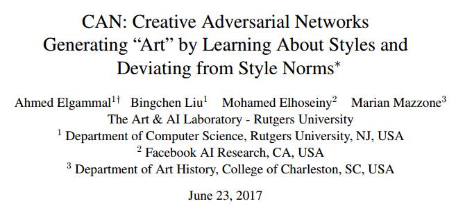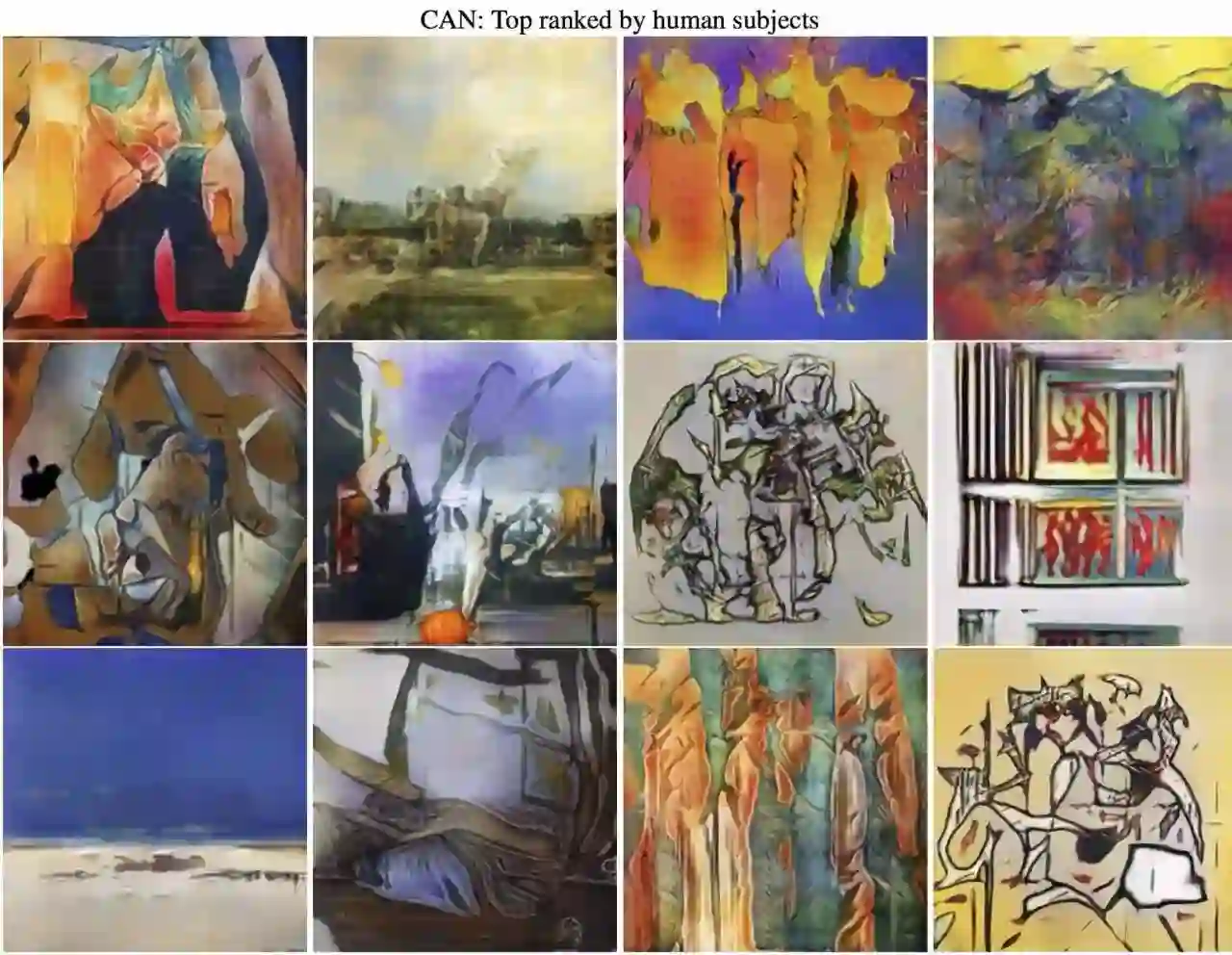 【新智元导读】美国罗格斯大学、Facebook AI 实验室和查尔斯顿学院的研究人员合作,在生成对抗网络(GAN)的基础上,对损失函数稍作修改,提出了创意生成网络(CAN),能够生成“具有创意”的画作。实验发现,人类参与者认为 CAN 生成的图像和人类艺术家画作在创意程度上不相上下。