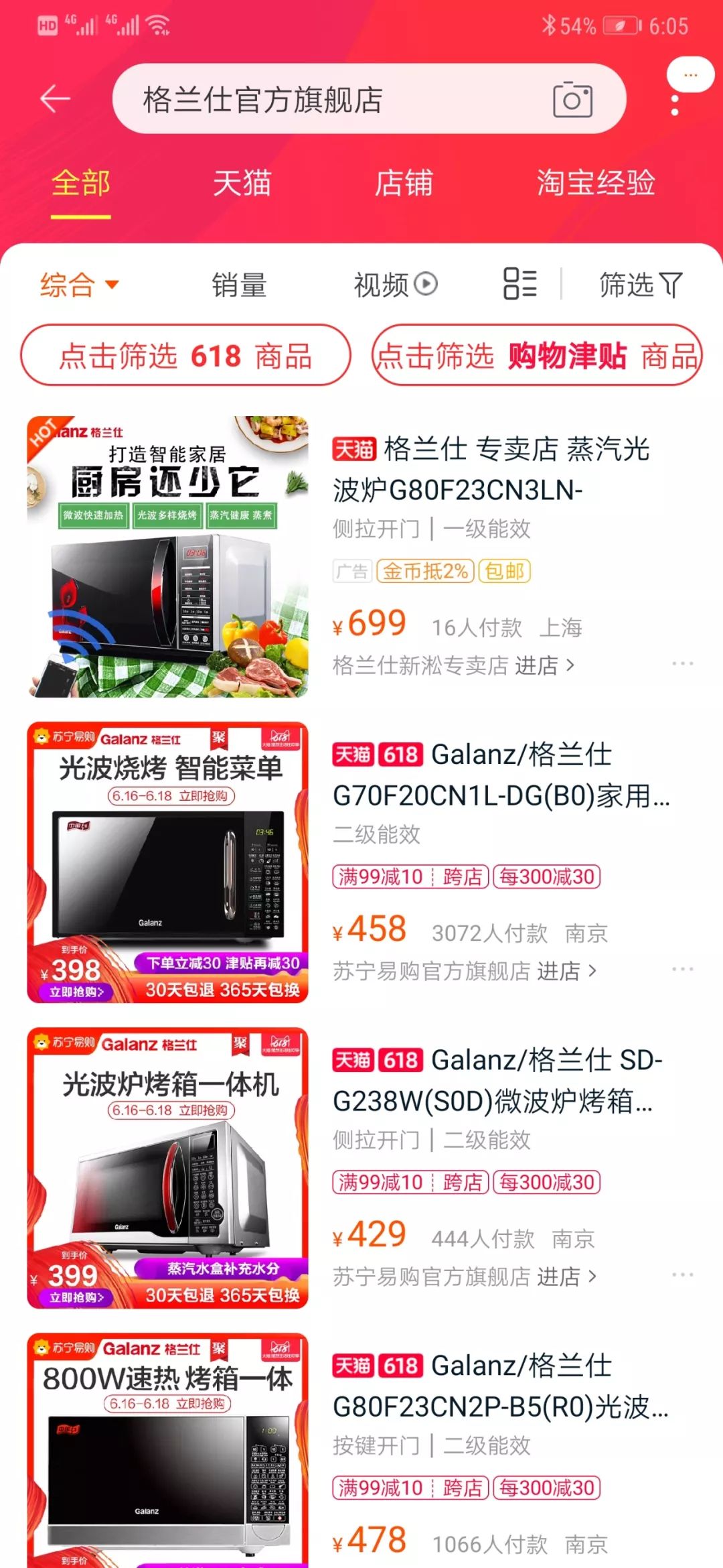 三、6月2日下午,天猫对格兰仕主要销售型号的“销量排名”展示进行屏蔽,使格兰仕核心销售产品无法展示给消费者,各核心店铺的核心单品流量进一步下滑。原来微波炉销量第1的单品,无法按照天猫规则展现。