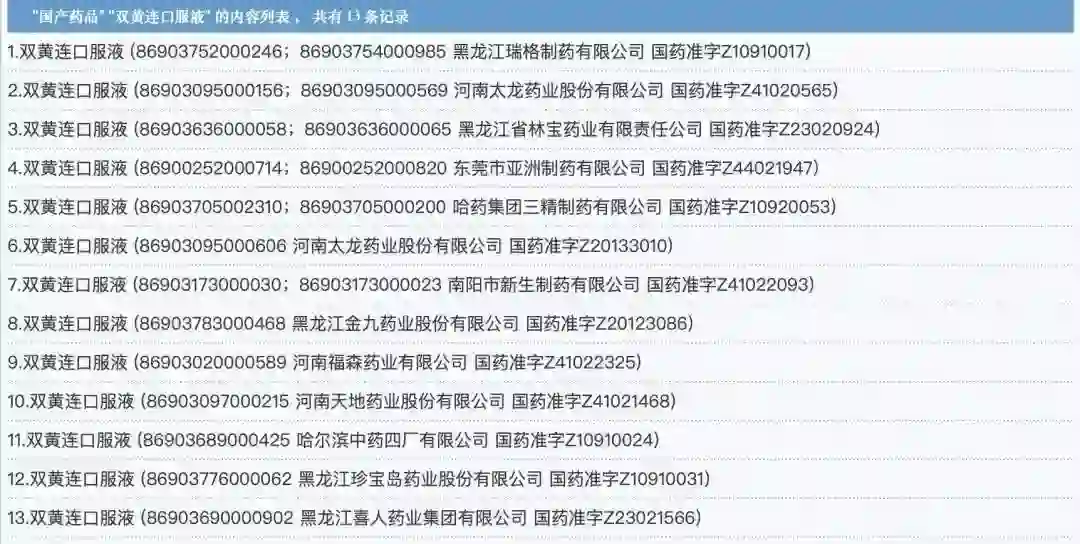 有资质生产销售双黄连口服液的,一共有12家企业,涉及4家上市公司 —— 太龙药业、哈药股份、福森药业、珍宝岛。