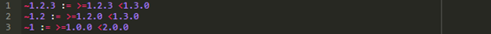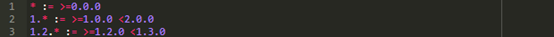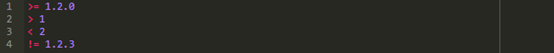 多个版本需求也可以用逗号分隔,例如:=1.2,<1.5。