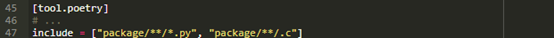 l 你可以指定自述文件、需要包含和排除的文件:不再需要使用MANIFEST.in。Poetry也会使用VCS的忽略文件(如gitignore)来填充exclude部分。