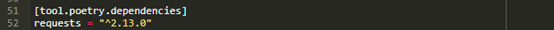 插入符号需求允许对指定版本进行语义版本兼容性的更新。如果新版本号没有修改主要的、次要的、补丁组中最左边的数字,则会被允许更新。在这种情况下,如果我们运行poetry update requests,而且如果它是可用的,那么poetry将会更新到版本2.14.0,但是不会更新到3.0.0。如果我们把版本字符串指定为^0.1.13,那么诗歌就会更新到0.1.14,而不是0.2.0。一般认为0.0.x不会与其他任何版本兼容。