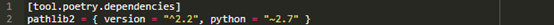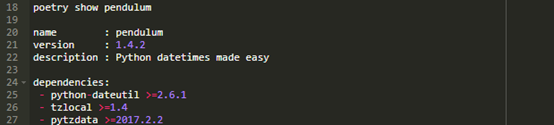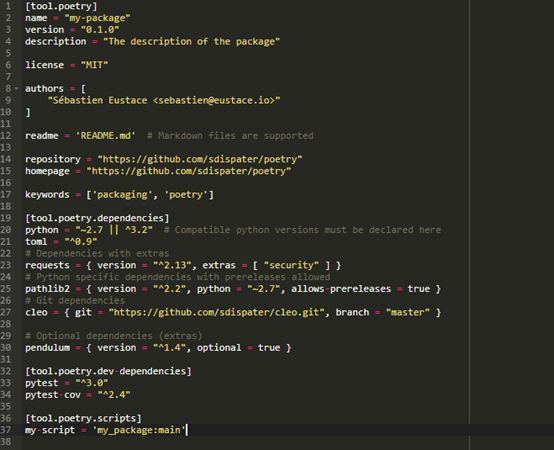 换句话说,poetry用pyproject.toml取代了setup.py, requirements.txt, setup.cfg, MANIFEST.in 以及最新加入的Pipfile。
