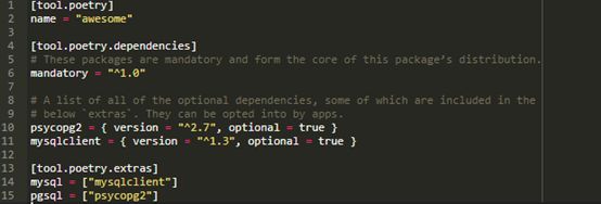 pyproject.toml中的tool.poetry部分由多个部分组成。
