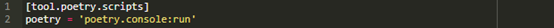 在安装了一个带有上述toml的包之后,poetry将在命令行中成为一个通用命令,它将等同于在poetry包中执行console.run命令。