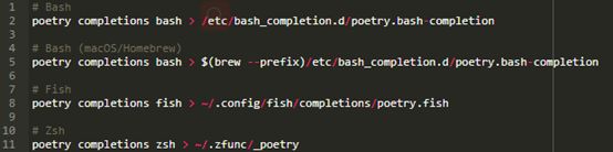 Poetry支持生成Bash、Fish和Zsh的自动补全脚本。完整细节请参阅poetry help completions,要点非常简单,只要使用以下命令中的某一个: