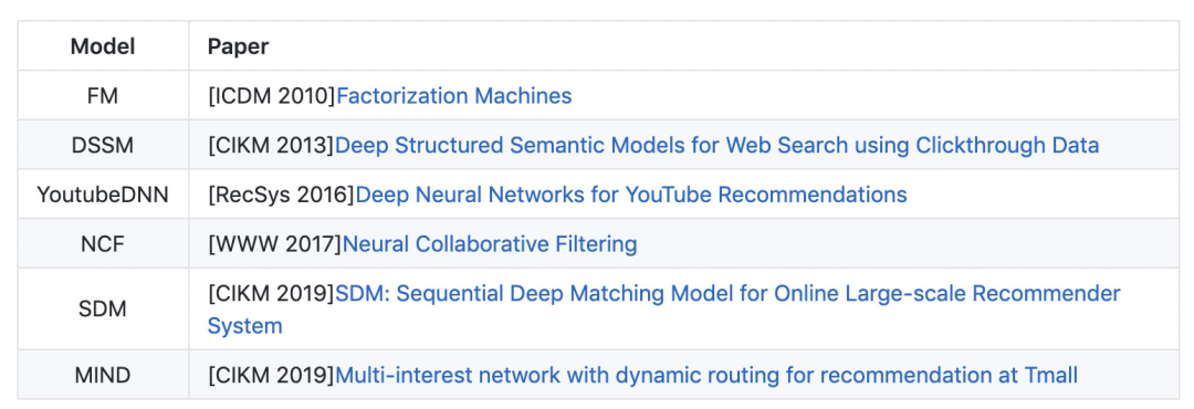 提供了若干主流的深度召回匹配算法的实现,并支持快速导出用户和物品向量进行ANN检索。非常适合同学们进行快速实验和学习,解放算法工程师的双手!