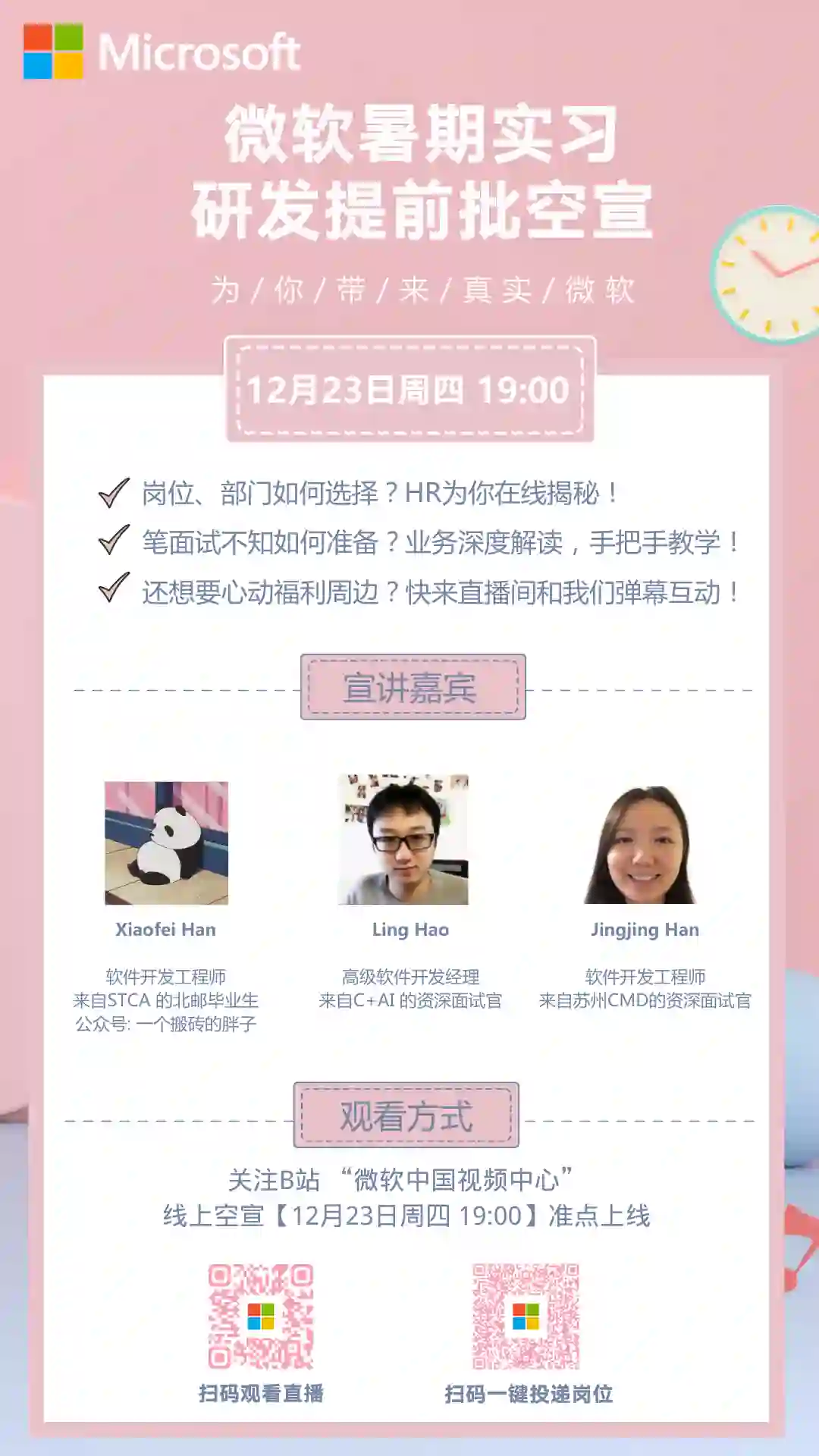 校招丨微软2022暑期实习生研发岗提前批即将上线