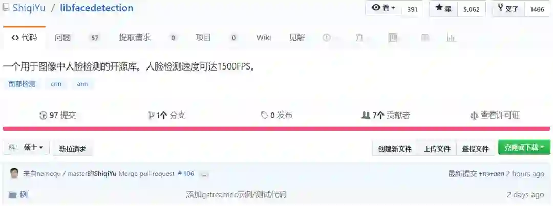 目前已经获得 5732 个Star,1596 个fork(GitHub地址:https://github.com/ShiqiYu/libfacedetection)