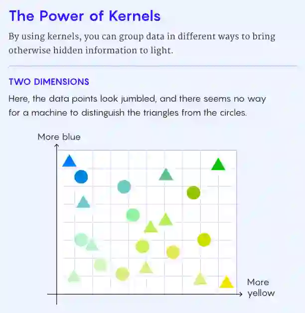 简单讲,内核就像镜头,可以让算法以不同的方式对数据进行分类,找到有助于区分未来输入的模式。Temme 说,这是一种以新的视角重铸信息的技巧,可以将原本隐藏在数据中的强大关系归零。