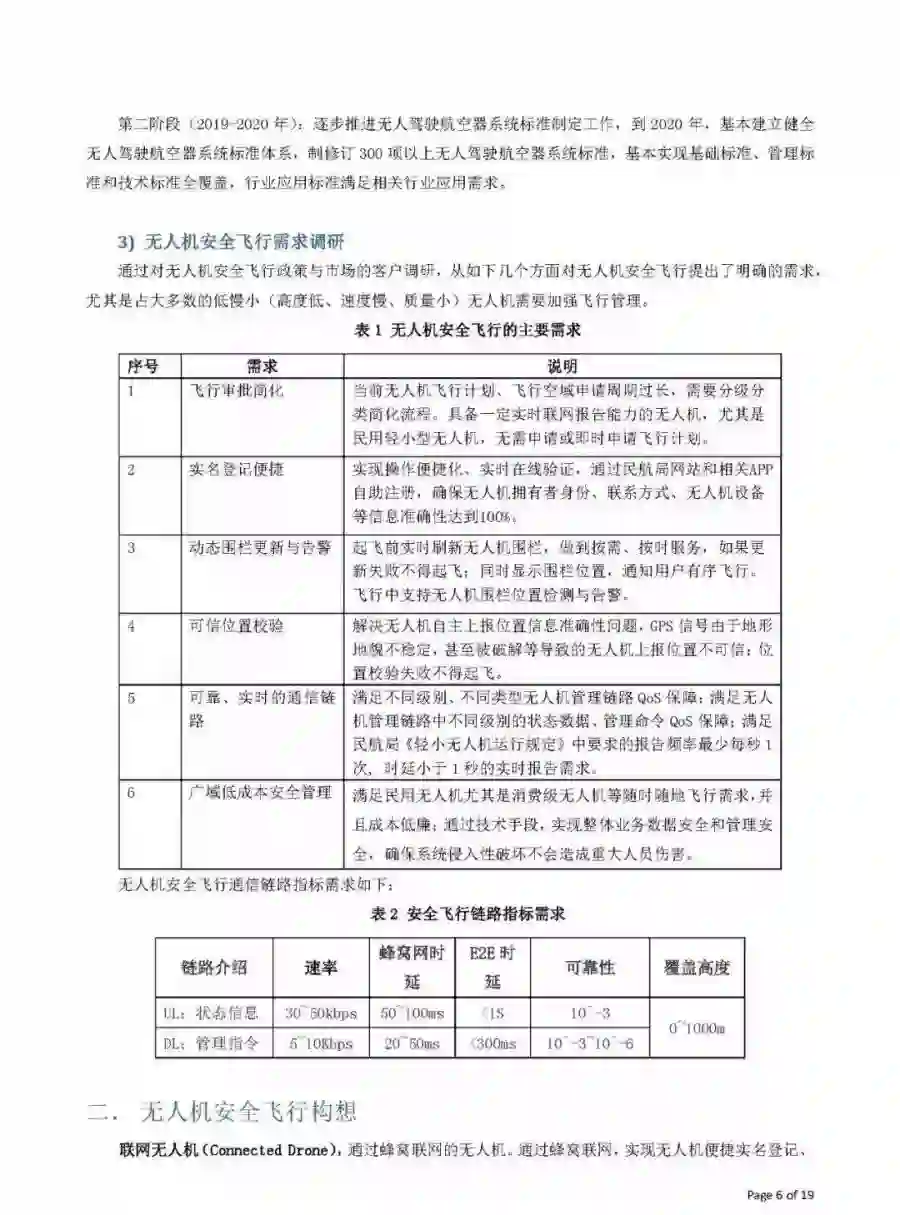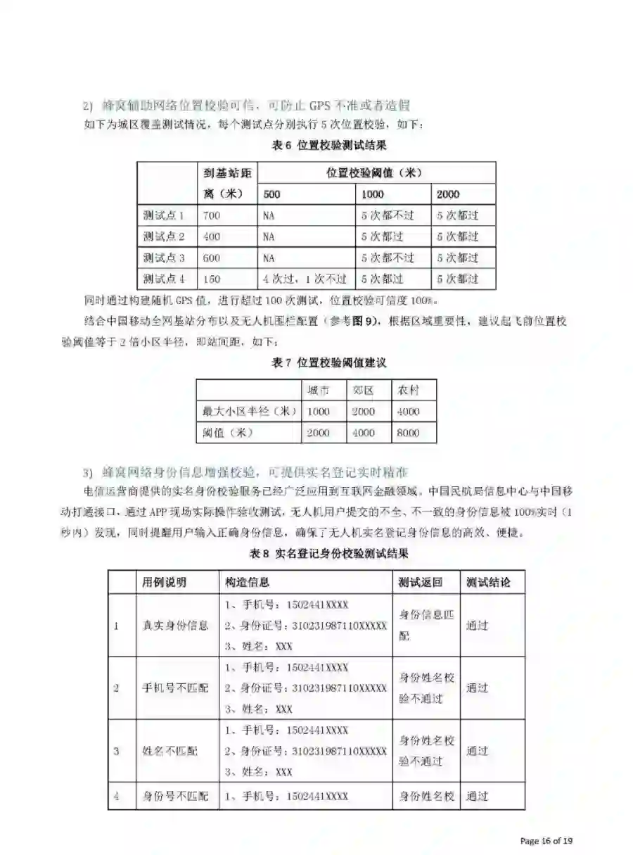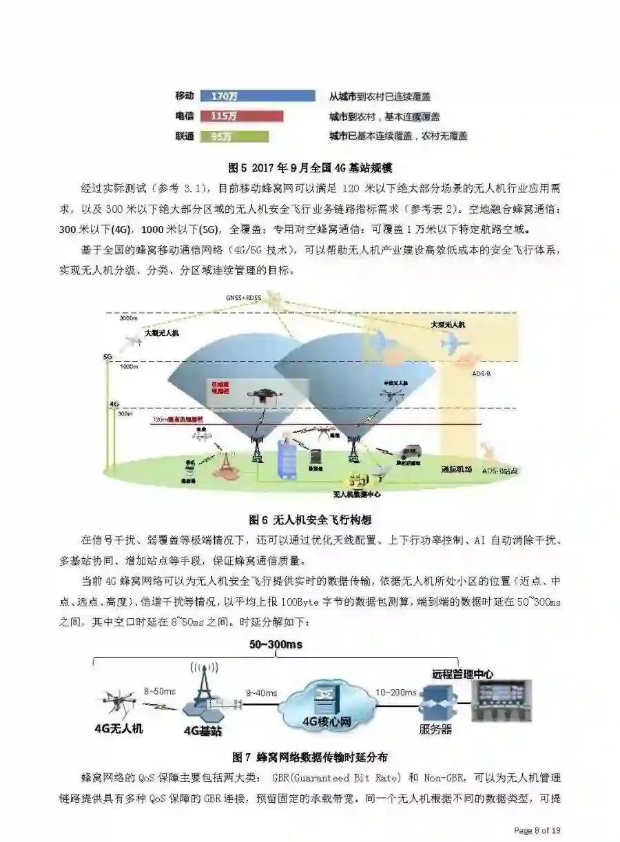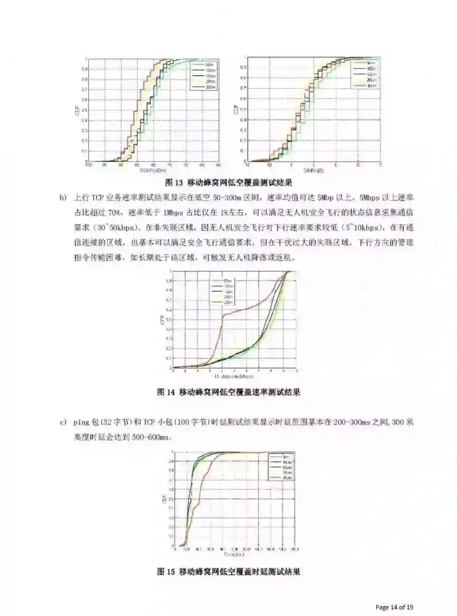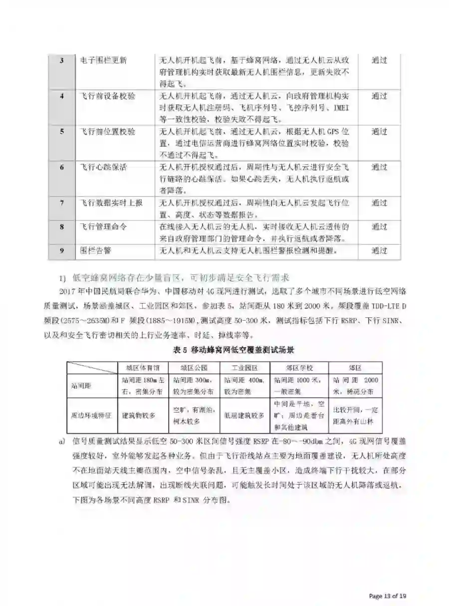 经过实际测试,目前移动蜂窝网可以满足 120 米以下绝大部分场景的无人机行业应用需求,以及 300 米以下绝大部分区域的无人机安全飞行业务链路指标需求。
