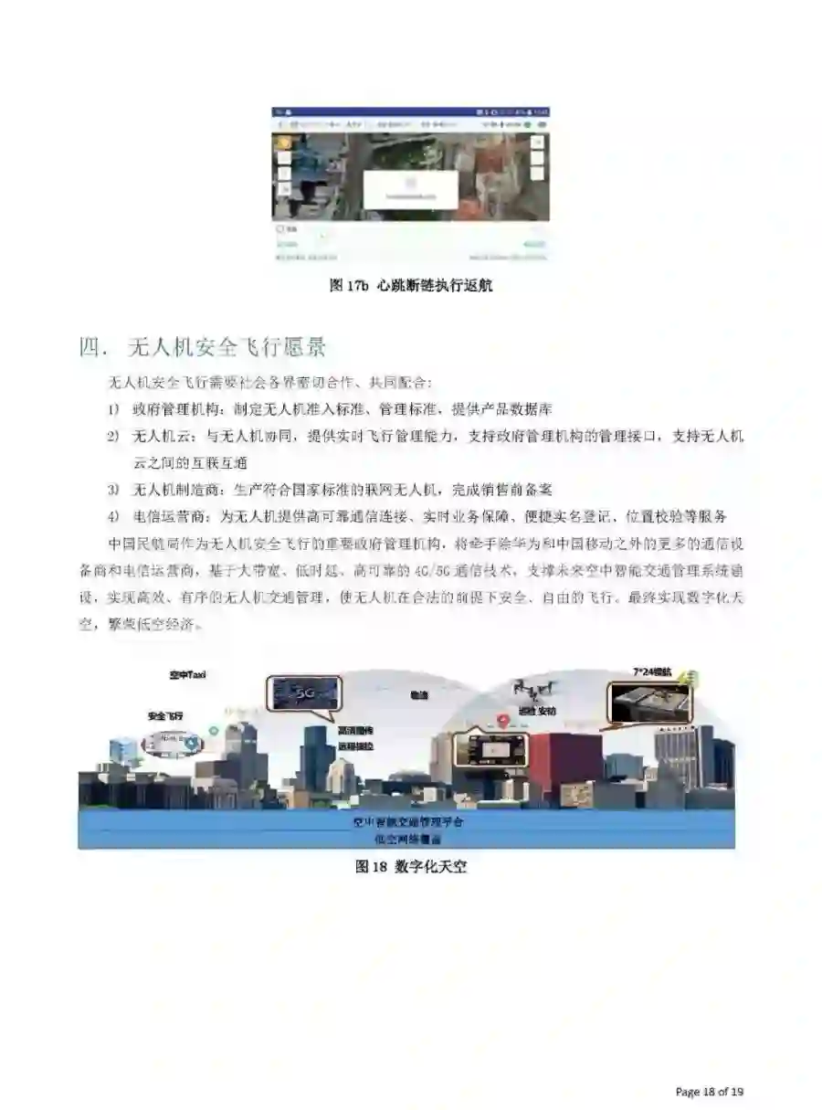 中国民航局作为无人机安全飞行的重要政府管理机构,将牵手除华为和中国移动之外的更多的通信设备商和电信运营商,基于大带宽、低时延、高可靠的4G/5G 通信技术,支撑未来空中智能交通管理系统建设,实现高效、有序的无人机交通管理,使无人机在合法的前提下安全、自由的飞行。