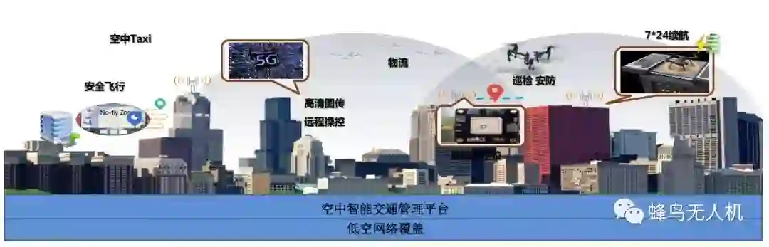 300m 以下空域上行 50Mbps 的实时图传、小于 50ms 的远程操控与业务应用等。