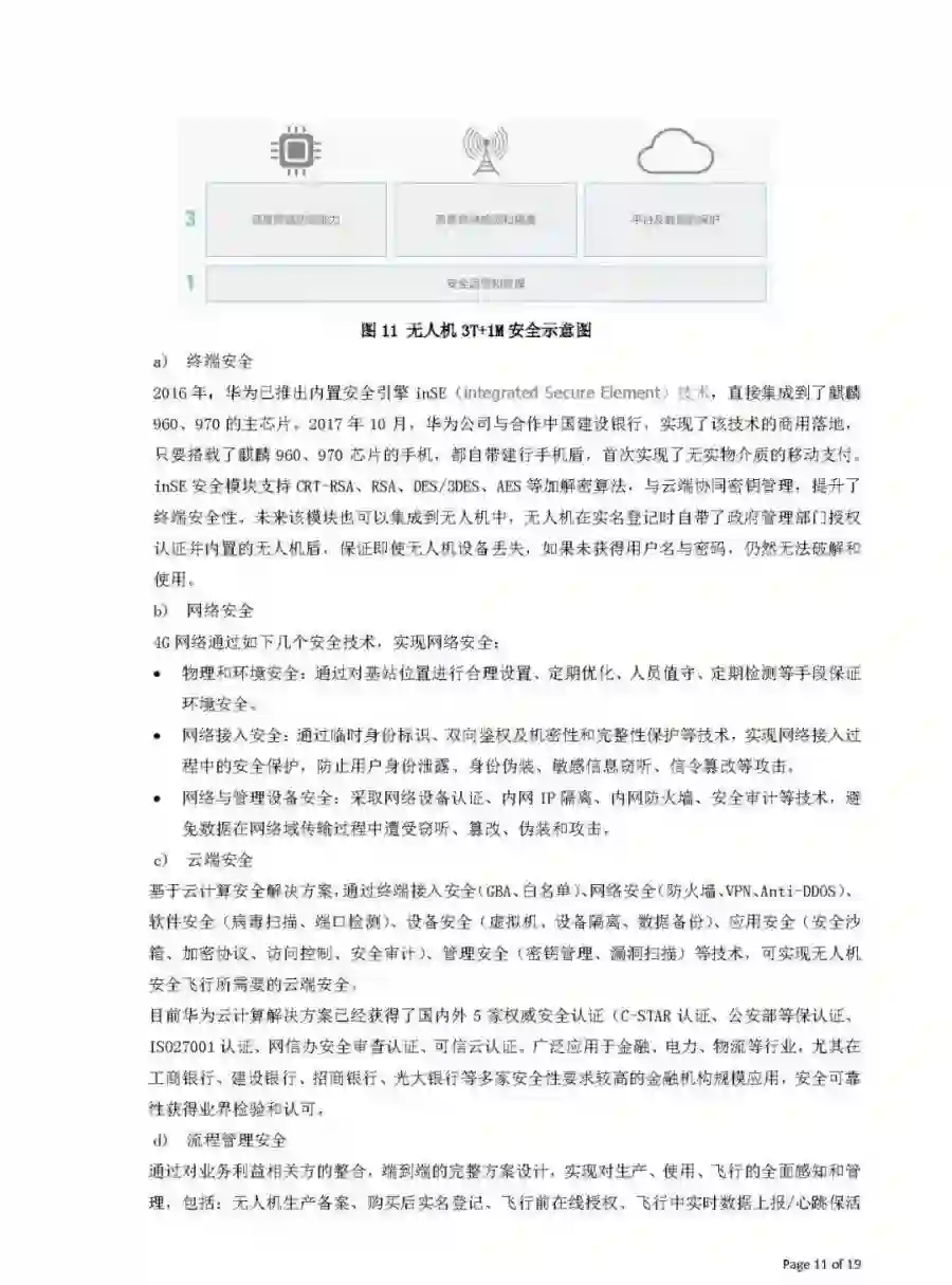 无人机安全飞行来自终端、网络、平台以及端到端整体业务安全的挑战,华为在终端、网络及云端安全都有成熟技术积累,要保证整体业务安全,需要整合各业务利益相关方,实现对生产、使用、飞行的全面感知和管理。