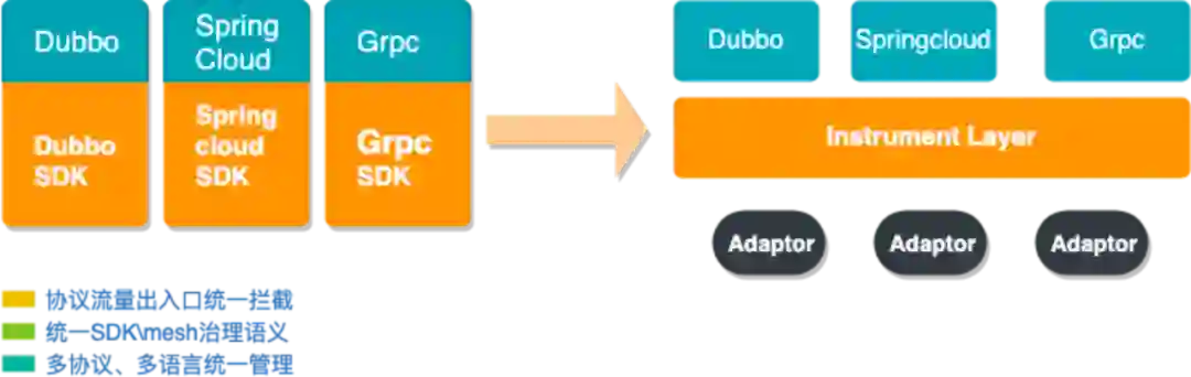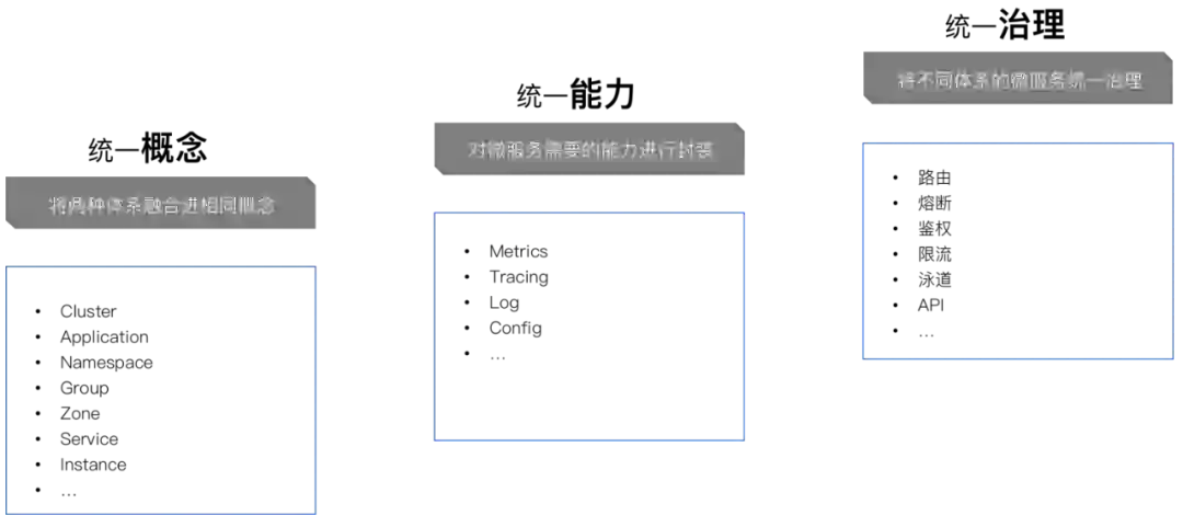 企业数字化向云原生演进过程面临诸多痛点,微服务框架不统一、协议多样化、语言异构,纷繁复杂的微服务技术栈,基础组件之间像一座座孤岛,各个基础组件的控制面不能互联,让用户的体验非常割裂,各种历史包袱阻碍了企业平滑过渡到云原生架构的进程。