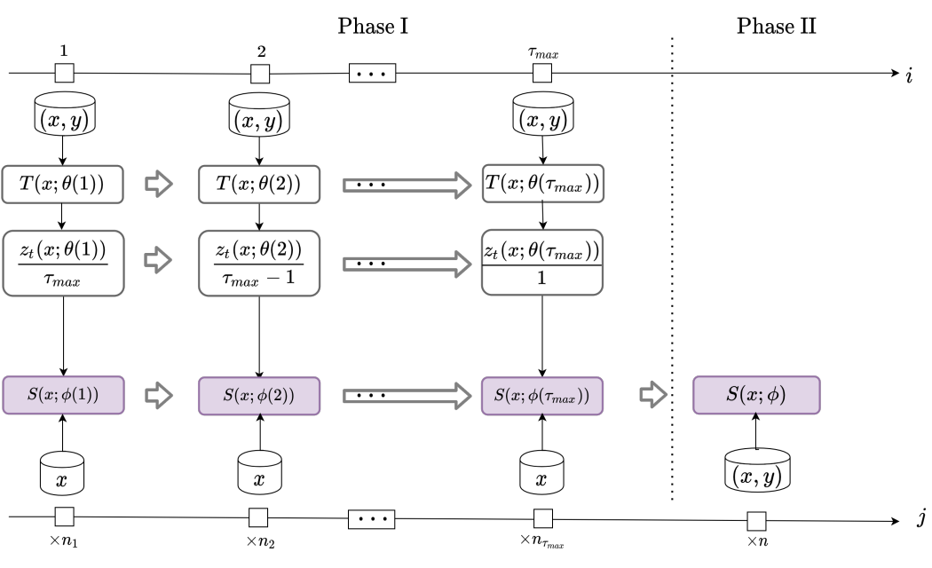 本文提出了 Pro-KD 方法,共分为两个阶段。第一阶段,学生模型仅由自适应平滑版本的教师模型监督训练;第二阶段,学生模型只接受 ground-truth 标签训练。