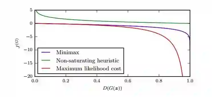 在上面的方程中,如果判别器的输入来自真实的数据分布,那么 D(x) 应该输出 1 来最大化上述关于 D 的目标函数,如果图像是由生成器生成的,那么 D(G(z)) 应该输出 1,以使关于 G 的目标函数最小化。从本质上说,G 应该生成这样的显示图像,它可以欺骗 D。采用梯度上升法(Gradient Ascent)使有关判别器的参数最大化,采用梯度下降法(Gradient Descent)最小化有关生成器的参数。但是在优化生成器目标方面存在一个问题,在游戏开始时,生成器还没有学到任何东西时,梯度通常非常小,当运行良好时,梯度非常高(见图 4)。但我们想要的是相反的行为。因此,我们将 E[log(D(G(z))] 最大化,而不是最小化 E[log(1-D(G(z))]。