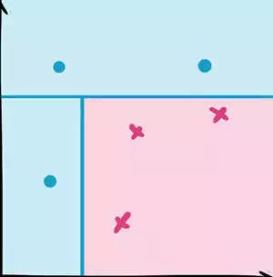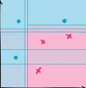 决策树的特点是它总是在沿着特征做切分。随着层层递进,这个划分会越来越细。