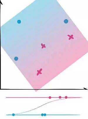 LDA的核心思想是把高维的样本投射(project)到低维上,如果要分成两类,就投射到一维。要分三类就投射到二维平面上。这样的投射当然有很多种不同的方式,LDA投射的标准就是让同类的样本尽量靠近,而不同类的尽量分开。对于未来要预测的样本,用同样的方式投射之后就可以轻易地分辨类别了。
