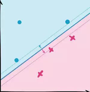 SVM的核心思想就是找到不同类别之间的分界面,使得两类样本尽量落在面的两边,而且离分界面尽量远。