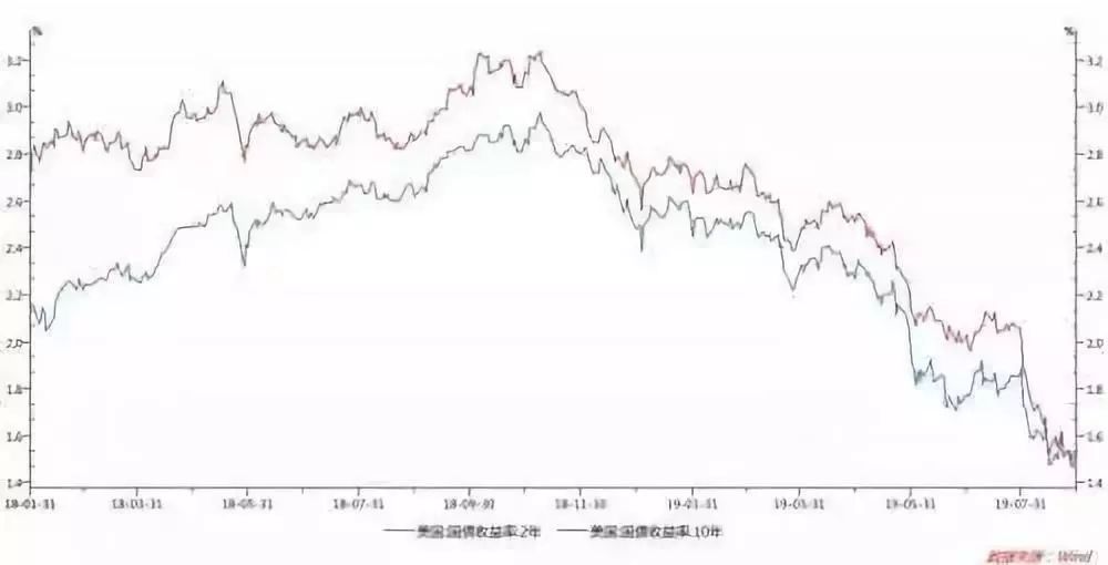 在美国债市收益率普遍下降的背景下,基准10年期国债的收益率自8月14日以来已多次低于2年期收益率。在健康的市场中,长期债券收益率要高于短期债券收益率。而债券收益率倒挂出现,往往是经济走向衰退的可靠信号。