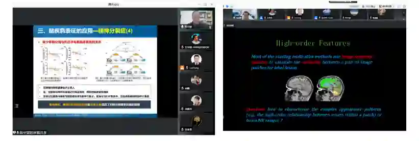 陈华富教授重点介绍了脑网络及其神经精神疾病中的方法与挑战,详细介绍了脑影像在精神分裂中的前沿研究。张道强教授从计算方法和进展方面详细介绍了脑影像在阿尔茨海默病应用等前沿问题。