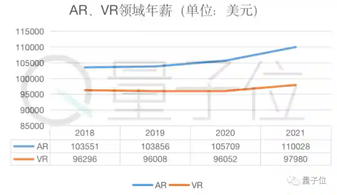 AR领域这几年的年薪一直在稳定上升,2021年相比2019年增幅达到5.9%: