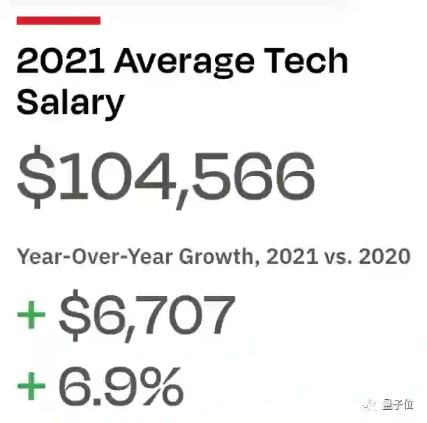 事实上,据Dice统计,2021年的科技行业不仅年薪整体上涨,而且首次平均达到了6位数(美元)以上: