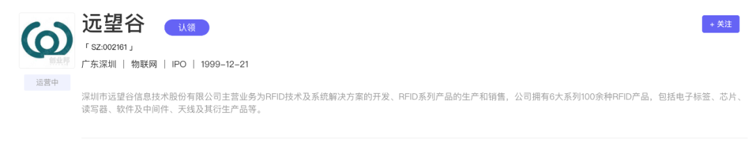 公开的信息显示,远望谷是中国物联网产业的代表企业,全球领先的RFID和物联网解决方案供应商。