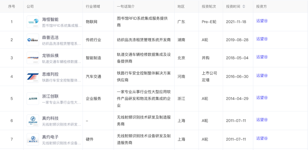 值得注意的是,本文的主角远望谷,本身也是“RFID”赛道的投资者,