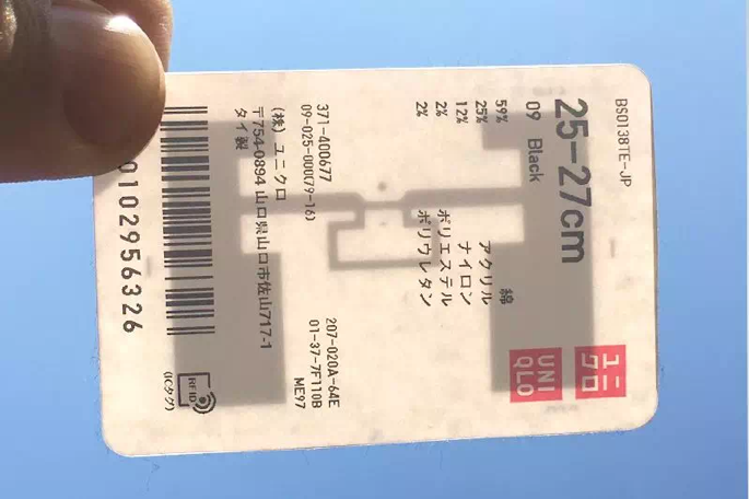藏在优衣库标签里的RFID芯片。图片来源:互联网