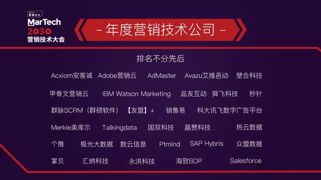 在本周举办的MarTech2030 营销技术商业论坛上,数据主义Data-ism成为了2018年的主题。在国内第一个聚焦营销技术和数据的大会上,主办方SocialBeta&DMA多马正式发布了《中国营销技术生态图》及年度/新锐营销技术公司榜单,来向品牌主及企业展示国内MarTech领域的生态和解决方案。