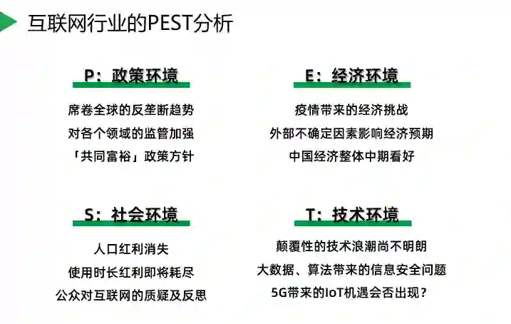 老师将会利用PEST分析法,解析互联网行业的政策、经济、社会、技术环境,以及大变局下的互联网应该走向何方,告诉大家产品经理该如何顺应发展,发掘新的机会!