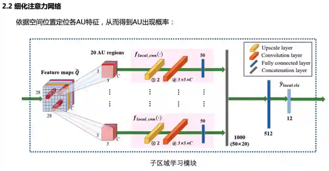 受注意力机制应用在各种视觉任务的启发,基于注意力的AU检测也得到了一定的发展。一方面,由于AU与相应的肌肉动作有关,每个AU的活动区域也相对有限。通常由面部landmark定义面部相关任务的空间位置。相关研究表明使用预定义的注意力机制来裁剪或增强面部区域对于面部AU检测任务来说是有帮助的。