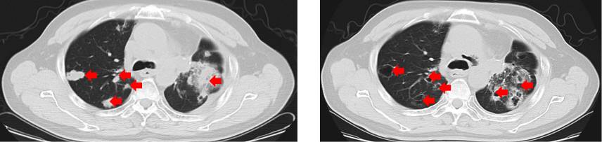 (患者服用阿帕替尼后肺部病灶形成空洞)
