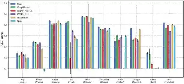 从实验结果可以发现,该框架在图像、音频、视频、文本、表格五种模态的典型数据集上的效果都远超当前 SOTA 方案,以下图的图像任务实验为例: