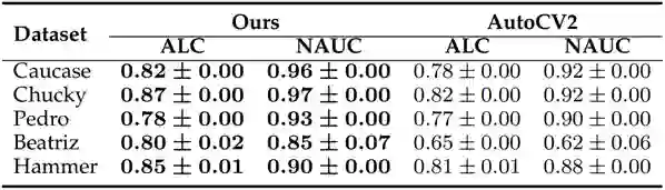 提出的框架(左)和 AutoCV2 实验结果(右)的对比。