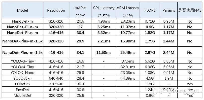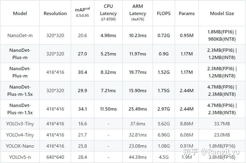 最后再放一下NanoDet-Plus和其他模型的对比: