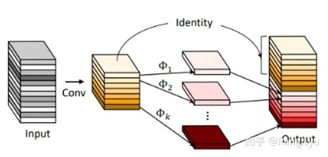 在今年新出的这些轻量级模型如YOLOX和PicoDet,以及之前的YOLOv5中,都使用了CSP-PAN作为特征金字塔模块。因此,我也重新设计了一个非常轻量但性能不错的PAN:Ghost-PAN。Ghost PAN使用GhostNet中的GhostBlock作为处理多层之间特征融合的模块,其基本结构单元由一组1x1卷积和3x3的depthwise卷积组成,参数量和计算量都非常小。