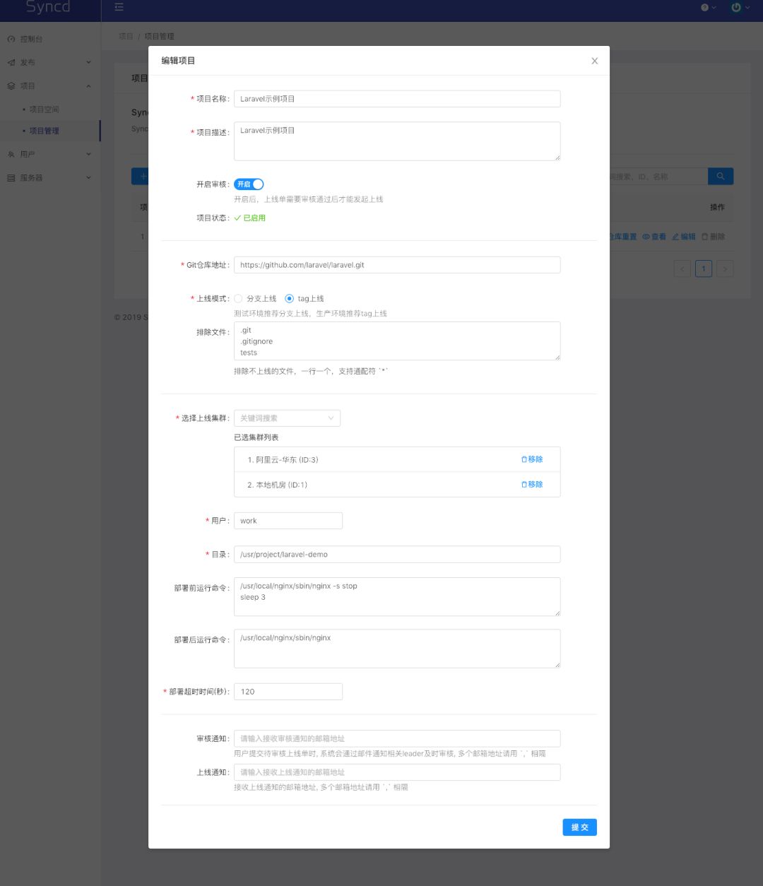 由于部署服务器(Syncd服务所在的服务器)与生产服务器(代码部署目标机)之间通过ssh协议通信,所以需要将部署机的公钥 (一般在这里: ~/.ssh/id_rsa.pub)加入到生产机的信任列表中(一般在这里 ~/.ssh/authorized_keys)
